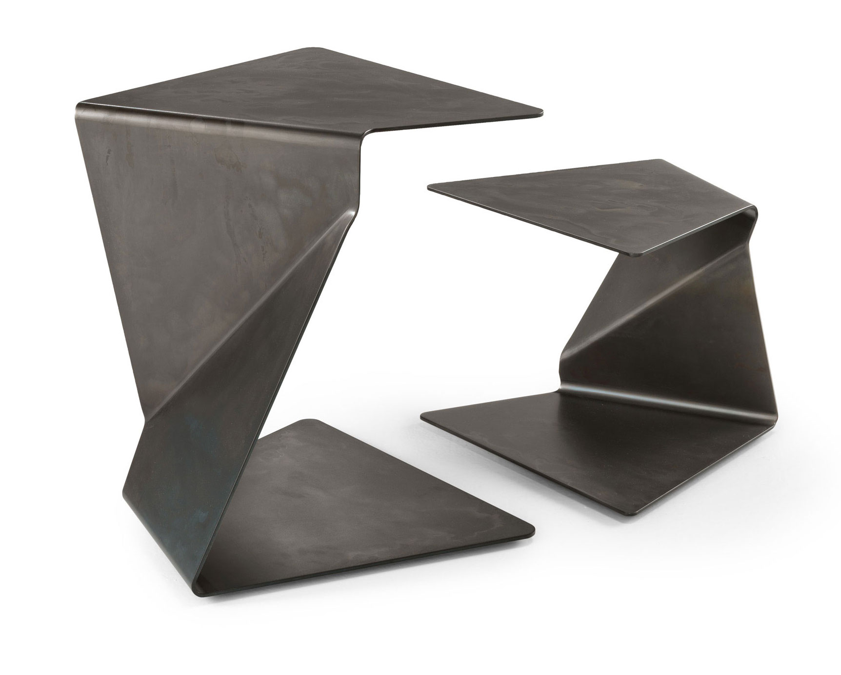 Beistelltisch Sigmy aus gebogenem Glas, 12 mm Stärke in der Ausführung transparent oder extralight, oder 10 mm Stärke in der Ausführung Schwarz 95. Neue Variante aus Metall, Farbe Metall wolkeneffekt.