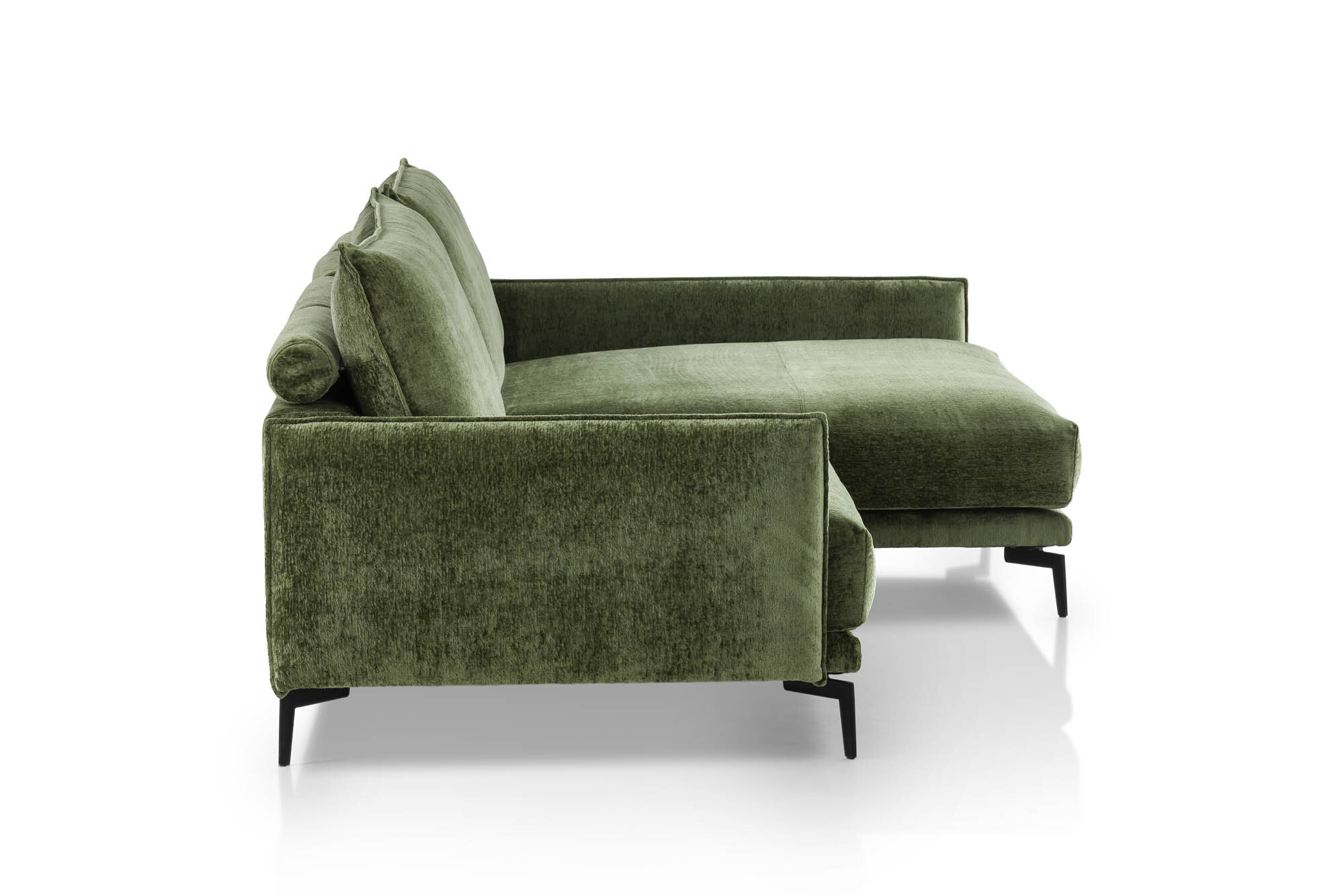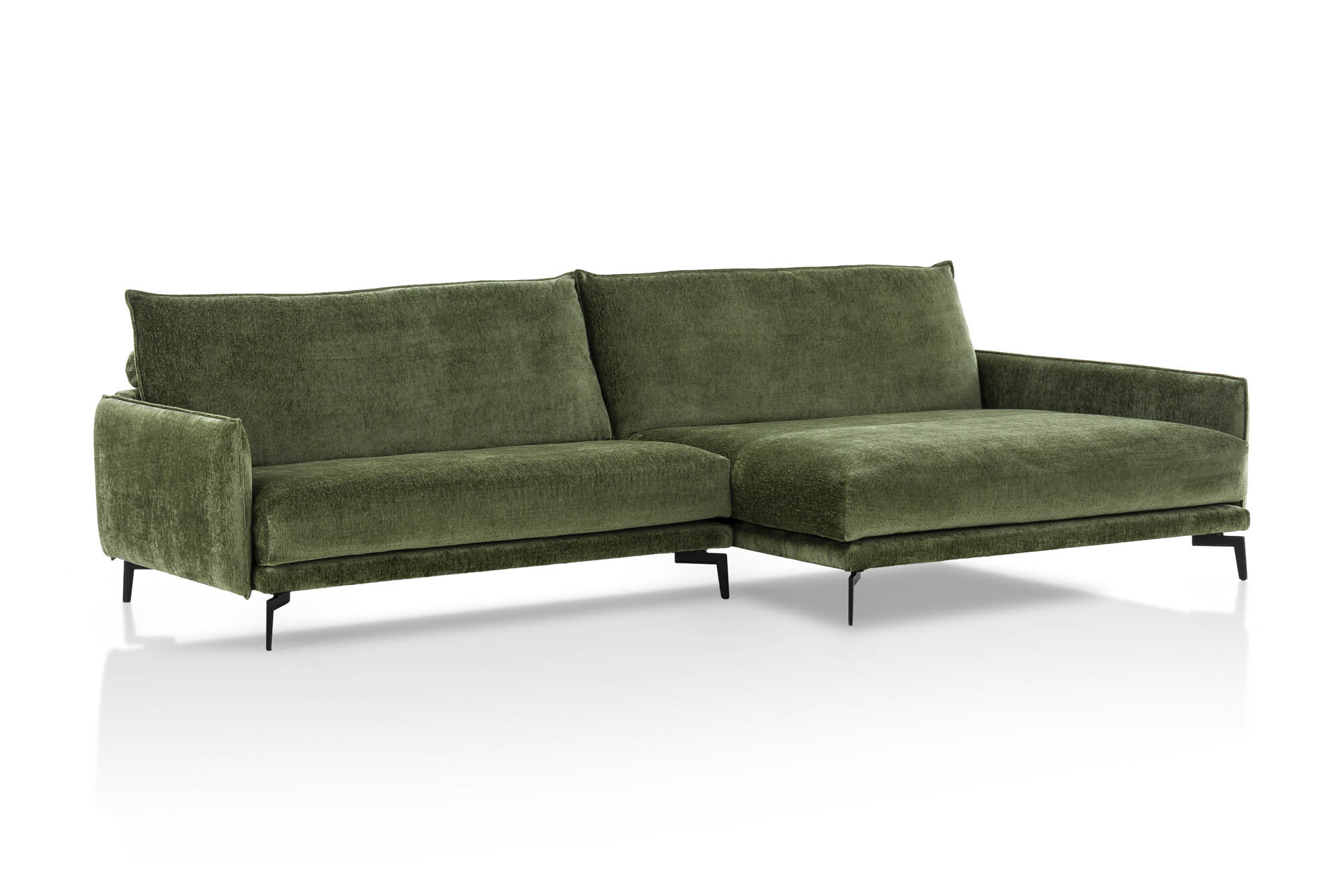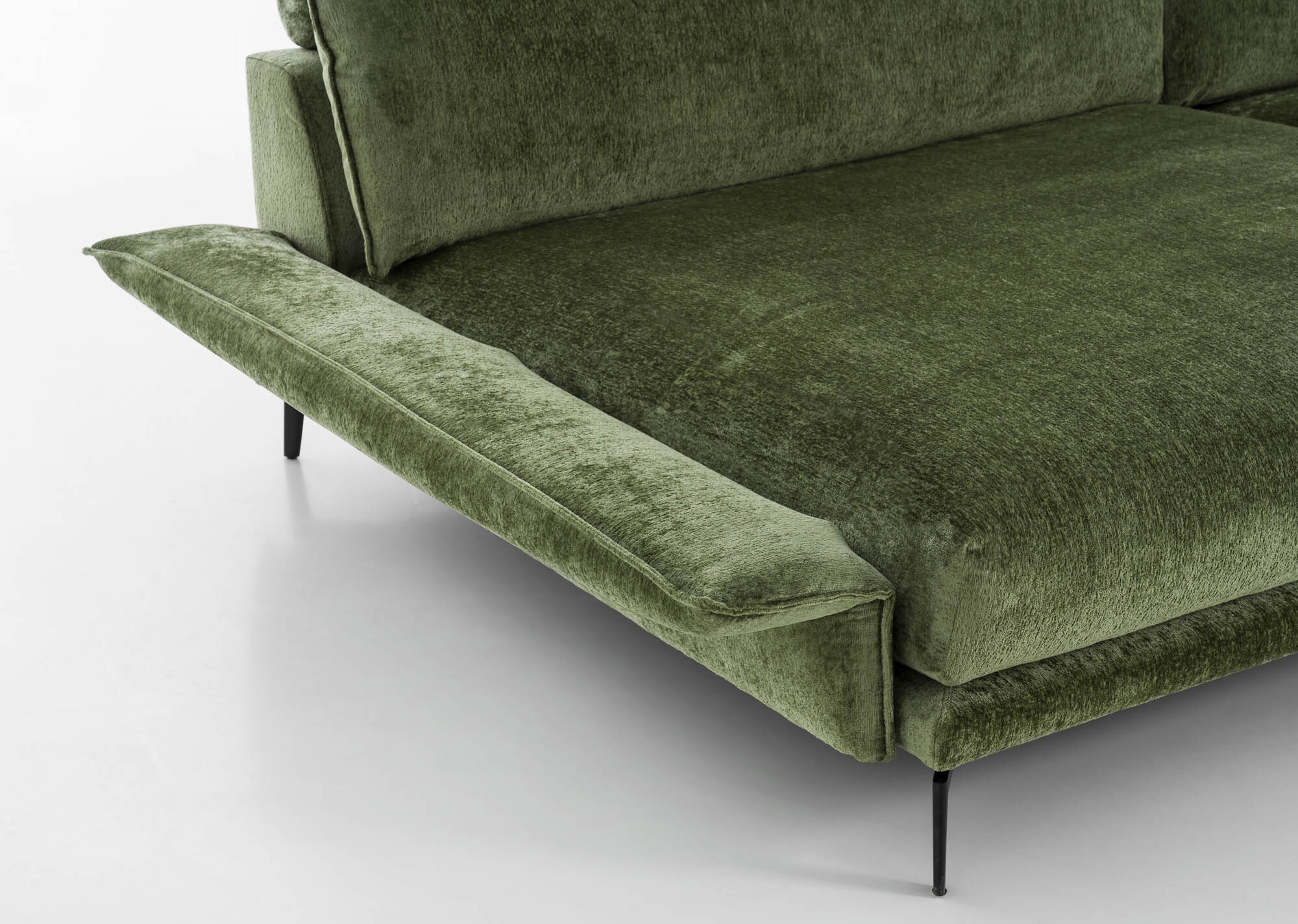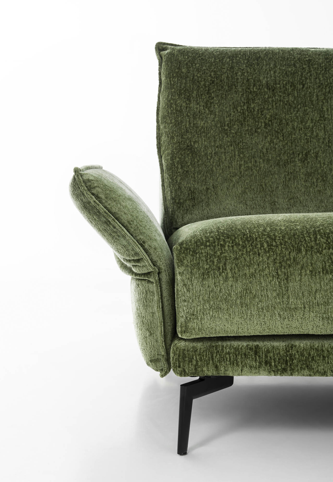 Velour, 100 % Polyester, Farbe schilfgrün, Sitz Taschenfederkern, Rücken echt, Metallfuß schwarz, Sitzhöhe 38 cm, Sitztiefe 62cm, bestehend aus:
