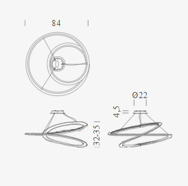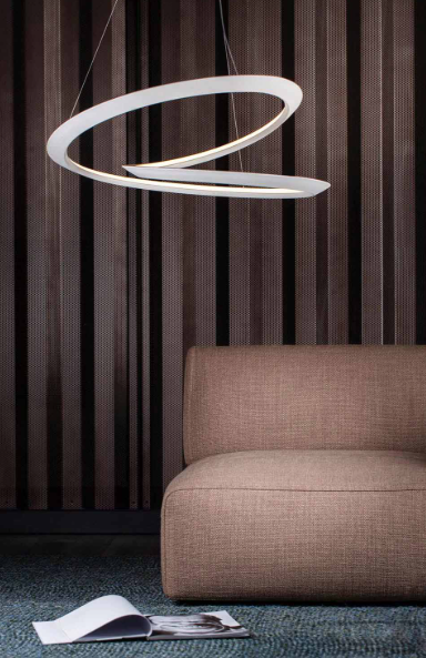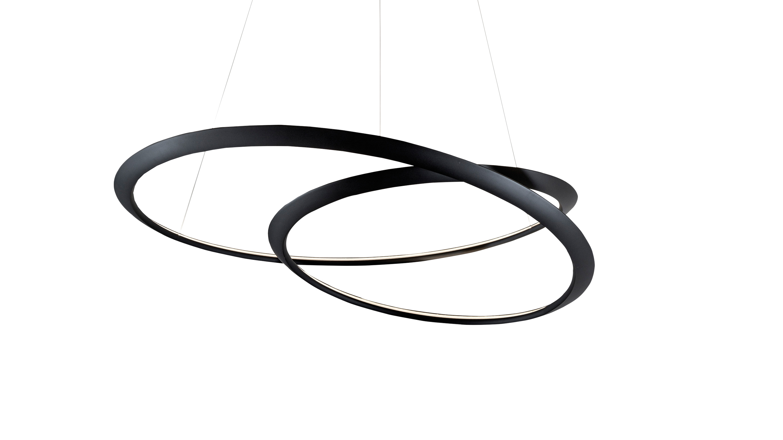 Die Kepler-Kollektion besteht aus lackiertem, extrudiertem Aluminium, dessen durchgehende Linie durch ein von Nemo entwickeltes dreidimensionales Herstellungsverfahren erzielt wird. Entworfen auf der Grundlage des mathematischen Prinzips des Möbiusbandes. Diffusor aus undurchsichtigem technopolymer.