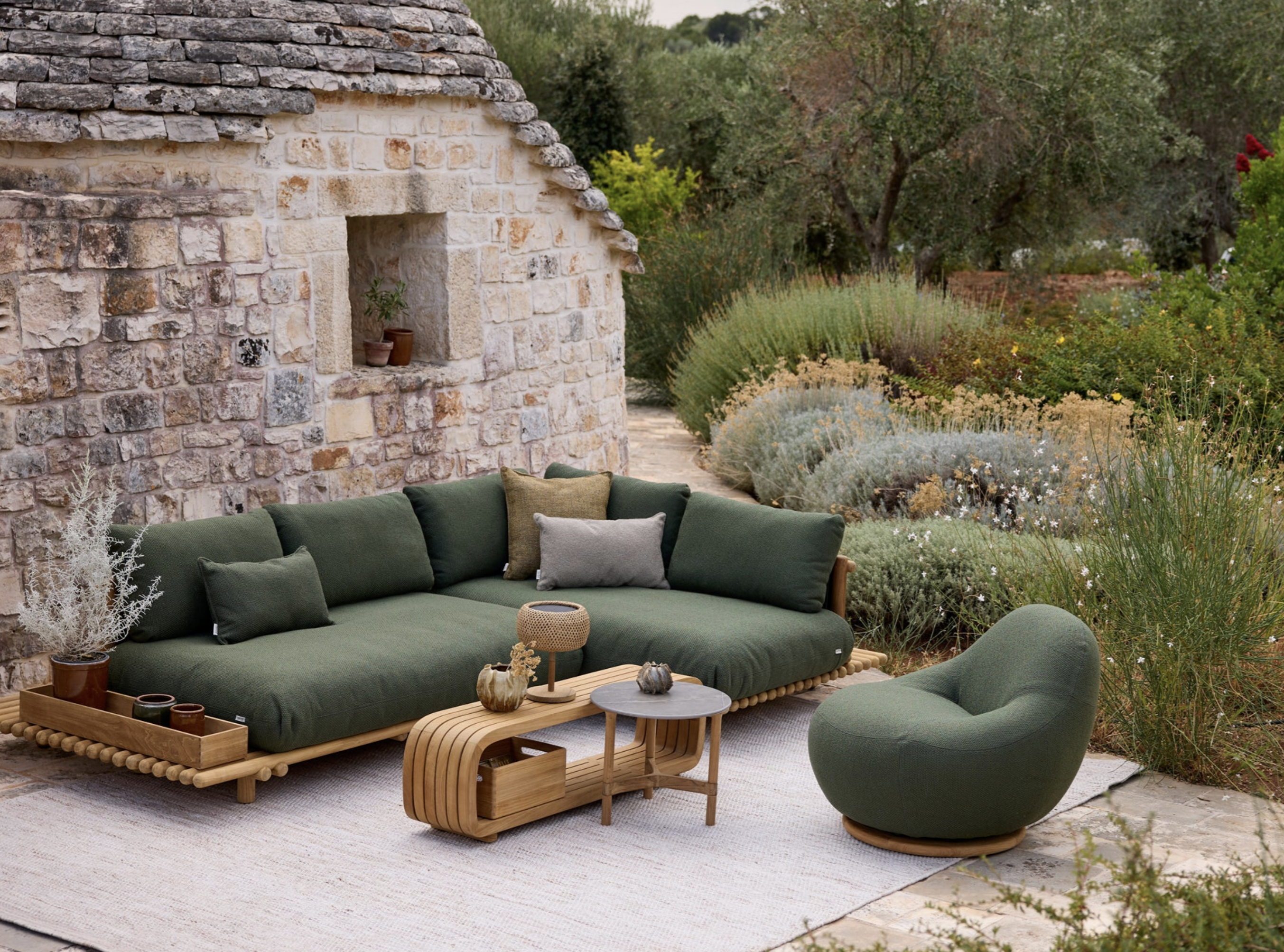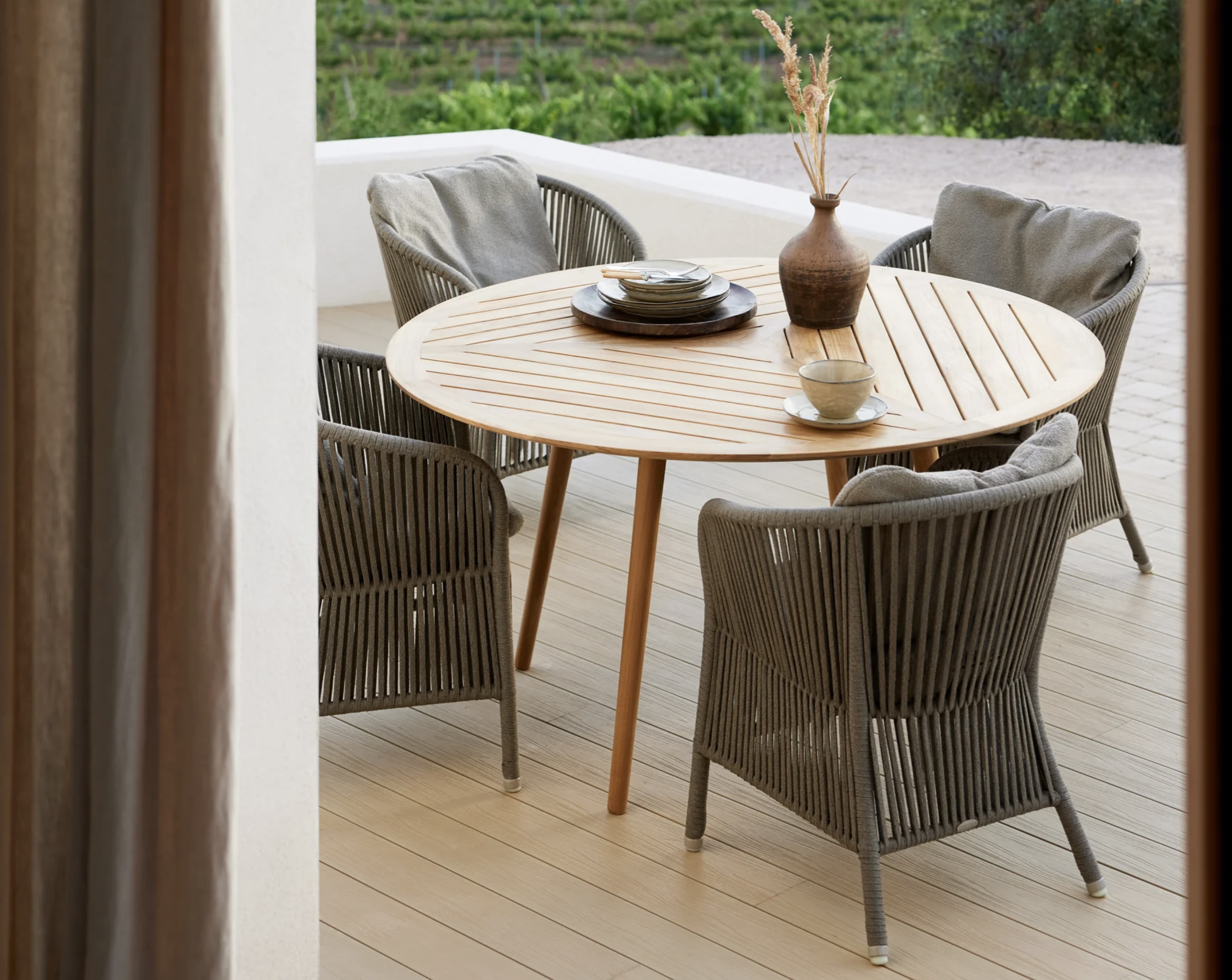 Mit intelligenten Technologien werden Design, Qualität und Lebensdauer der Produkte stetig optimiert. Innovationen eröffnen neue Möglichkeiten für mehr Nachhaltigkeit – wie zum Beispiel das QuickDry & Airflow-System von Cane-line, bei dem Kissen rund eine Stunde nach einem Regenschauer wieder trocken sind.
