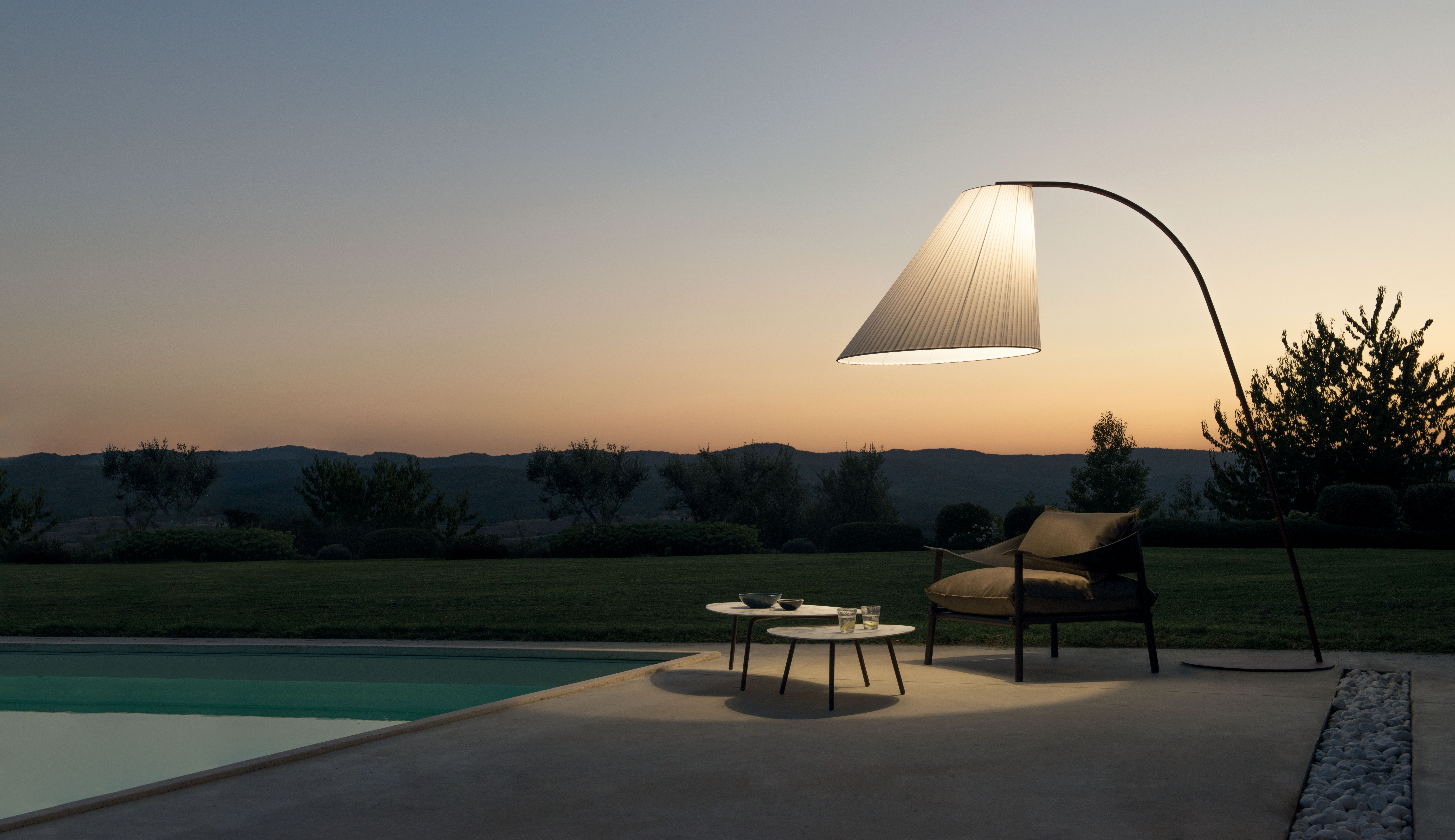 In verschiedenen Ausführungen wie Hängeleuchte, Bodenleuchte, Tischleuchte, Bogenleuchte erhältlich.