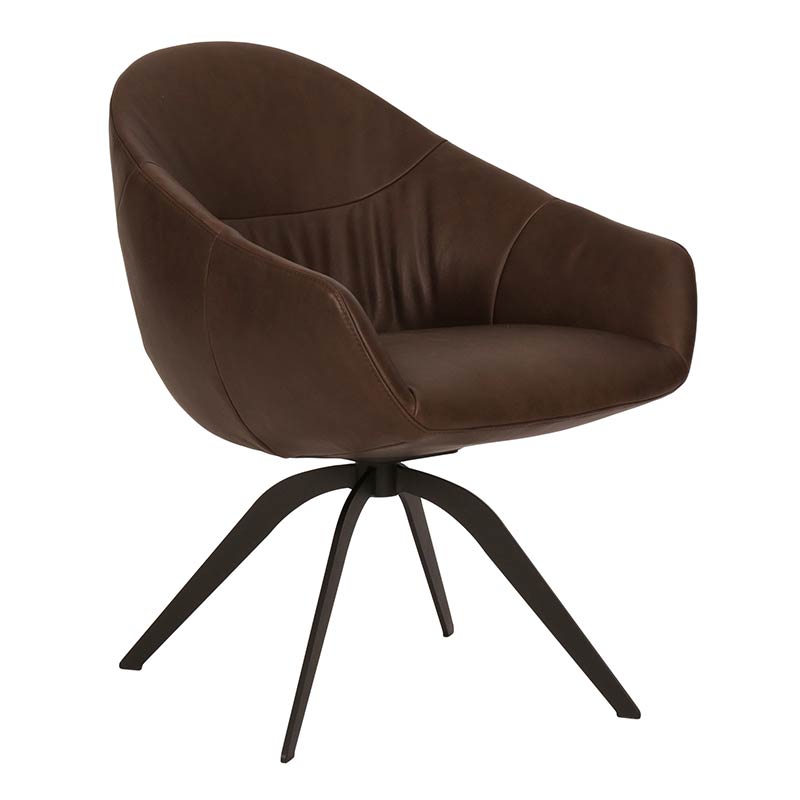 In unserer Ausstellung in: Leder schwarz, Armlehnen, niedriger Rücken, Drehgestell pulverbeschichtet schwarz. Grösse: B 71 cm H 79 cm.