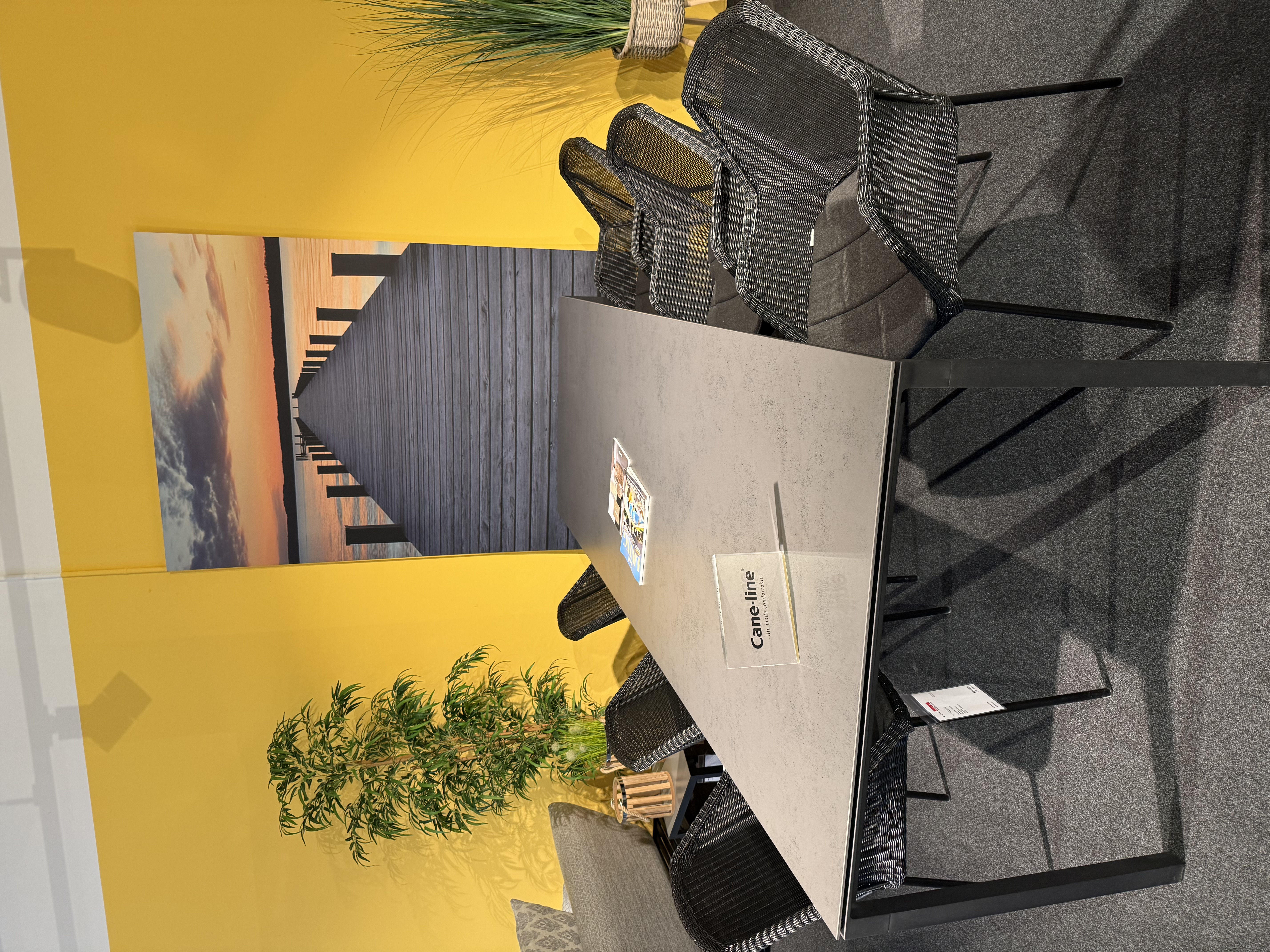 L 280 B 100, und 6er-Stuhlset Breeze mit Kissen black.