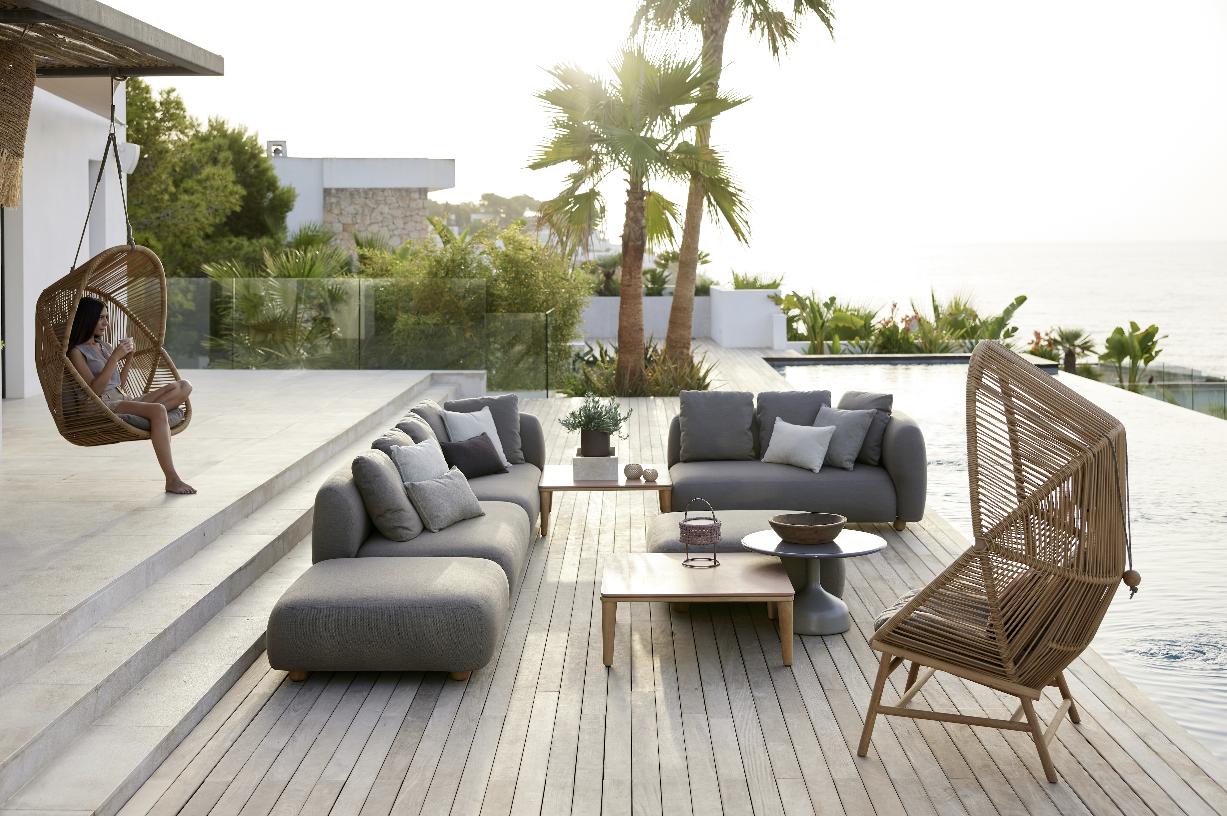 Mit intelligenten Technologien werden Design, Qualität und Lebensdauer der Produkte stetig optimiert. Innovationen eröffnen neue Möglichkeiten für mehr Nachhaltigkeit – wie zum Beispiel das QuickDry & Airflow-System von Cane-line, bei dem Kissen rund eine Stunde nach einem Regenschauer wieder trocken sind.