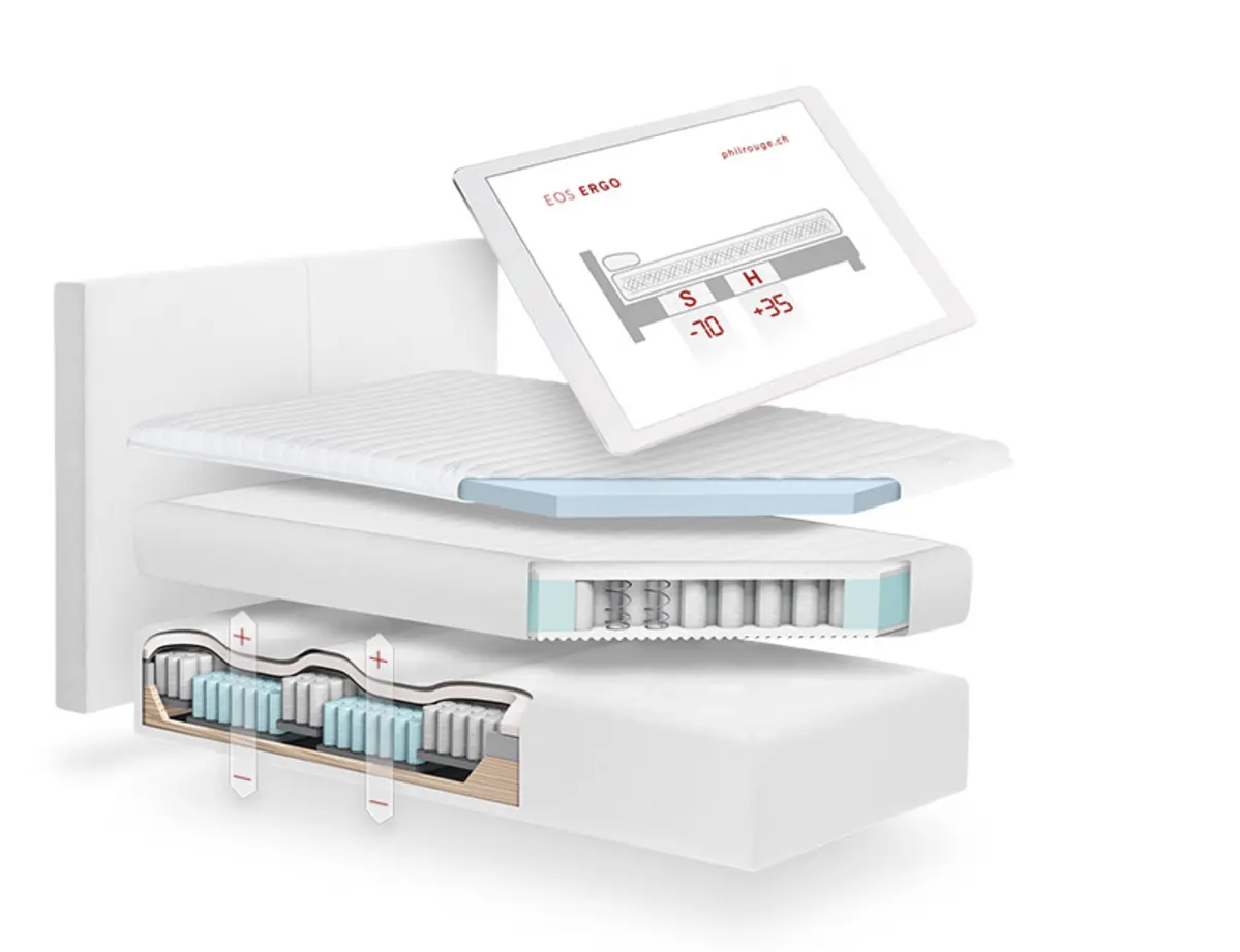 Das Boxspring, das zu 100% einstellbar ist. Mit der verstellbaren Schulter- und Gesässzone ist auch Boxspring-Schlafkomfort individuell einstellbar.