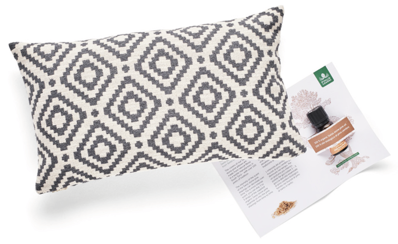 Holen Sie sich die Schweizer Alpen nach Hause! Das Arven- Zierkissen (mit Spänen aus dem Engadin) bringt mit seinem Duft pure Entspannung.